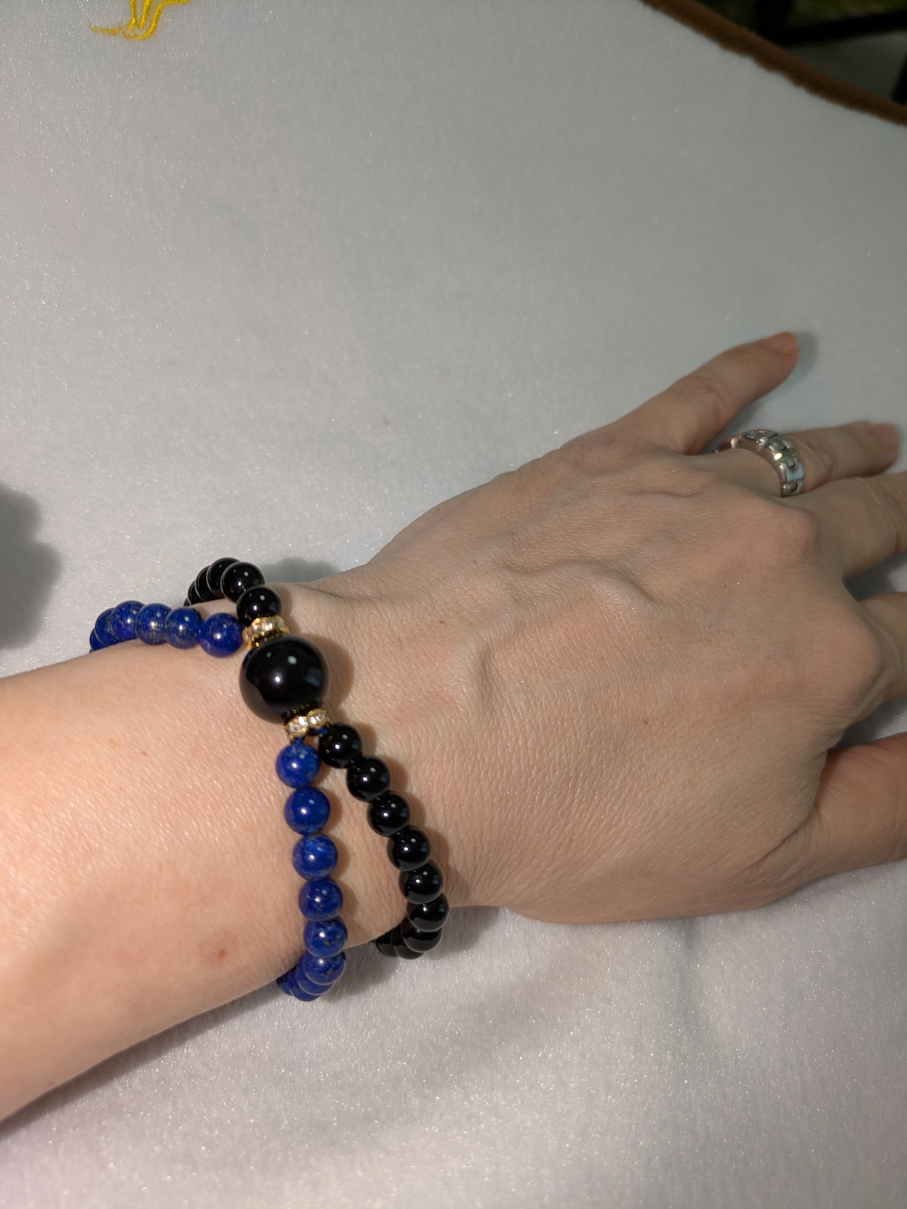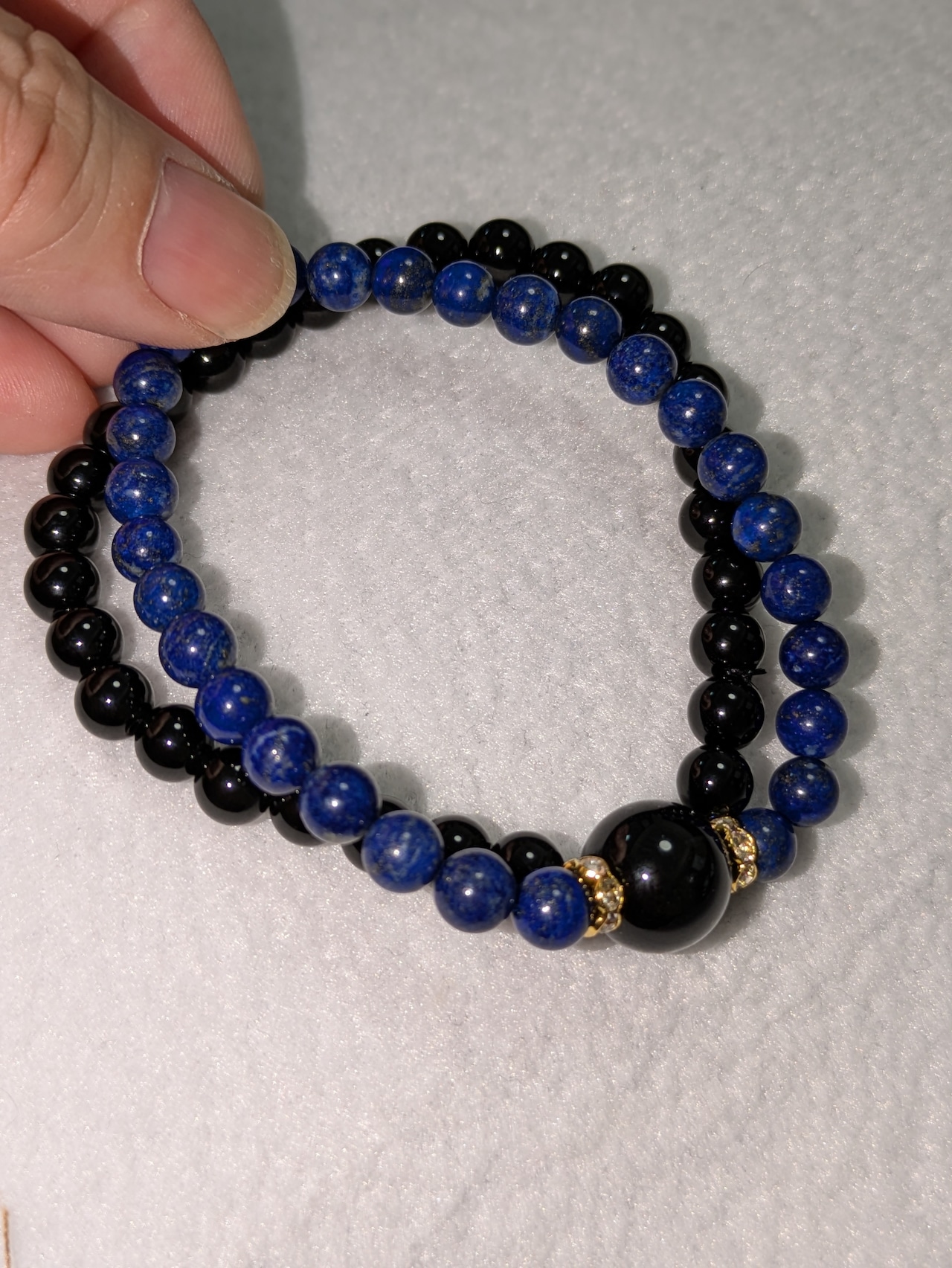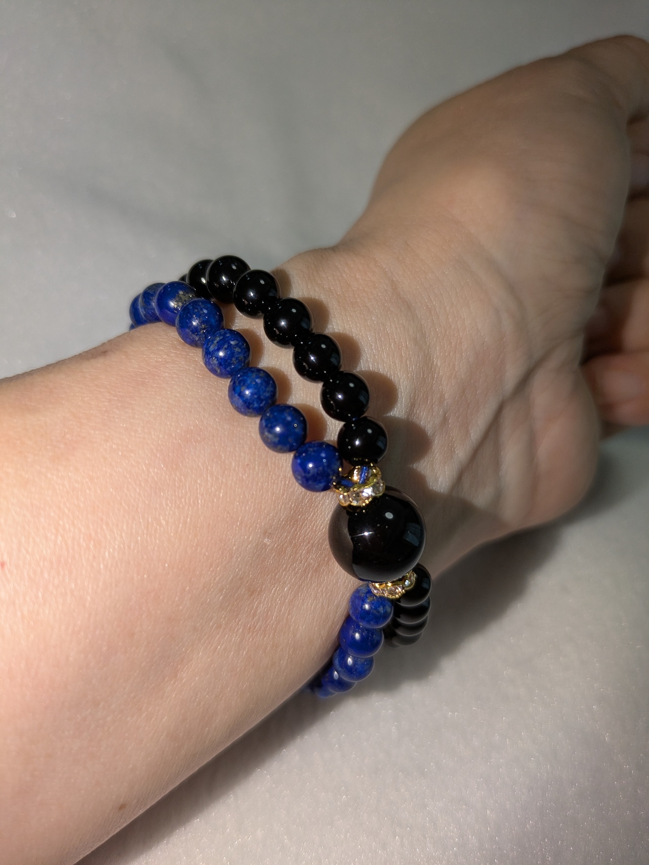 17cm 2重ブレス 息子ちゃんとコラボ モリオン(最高級)ラピスラズリ(4A)4mm モリオン(最高級)12mm ひと粒