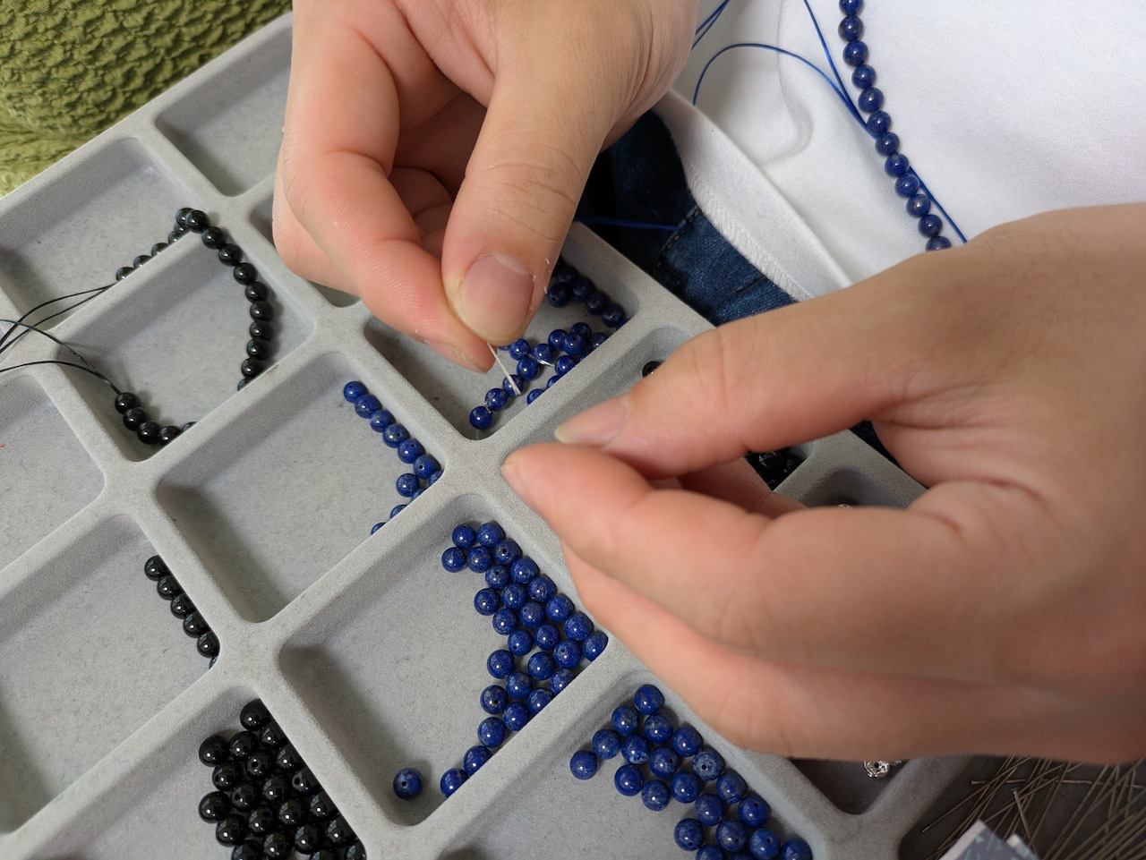 息子ちゃん・・6mmラピスラズリ&モリオンを作成