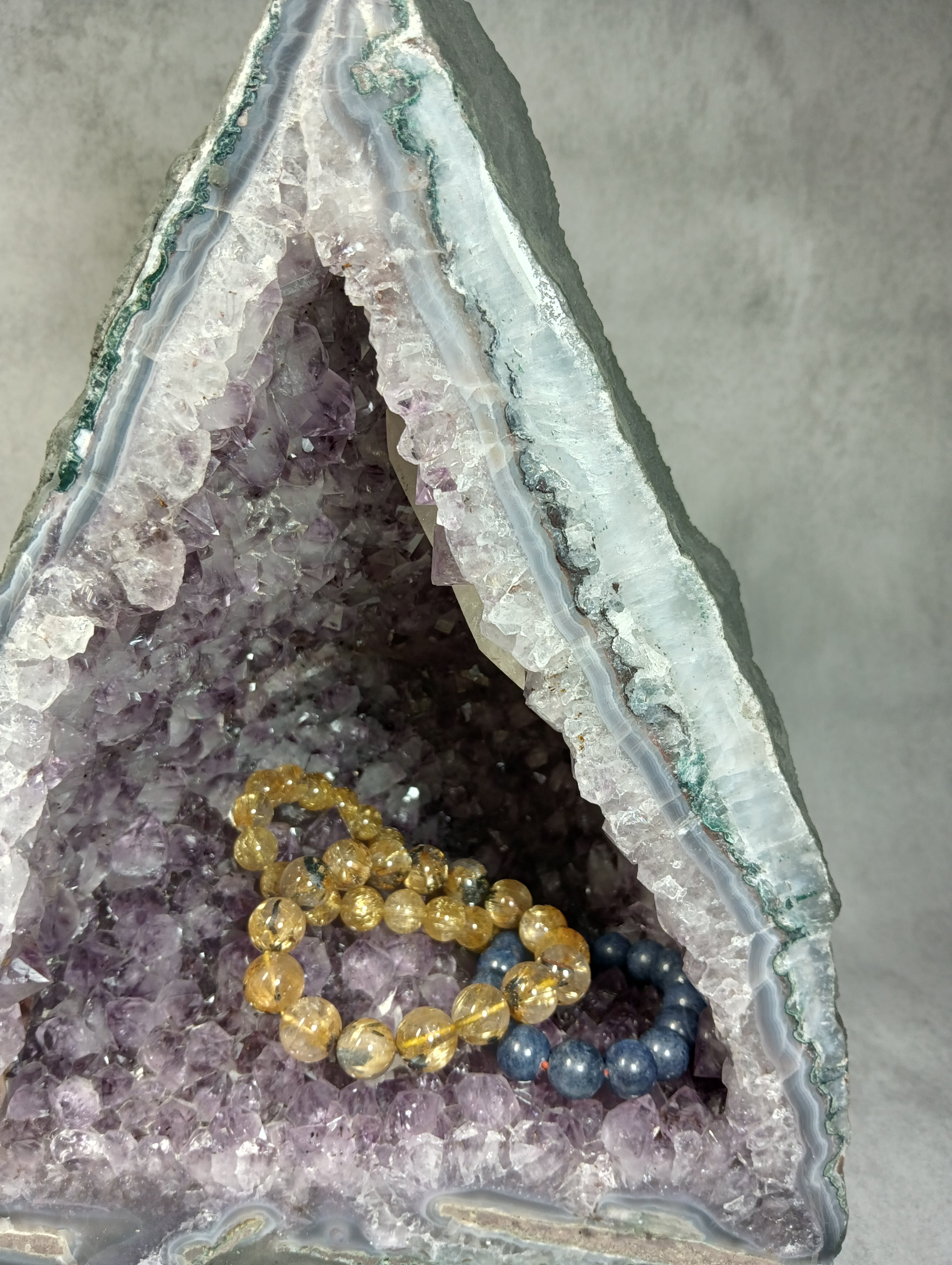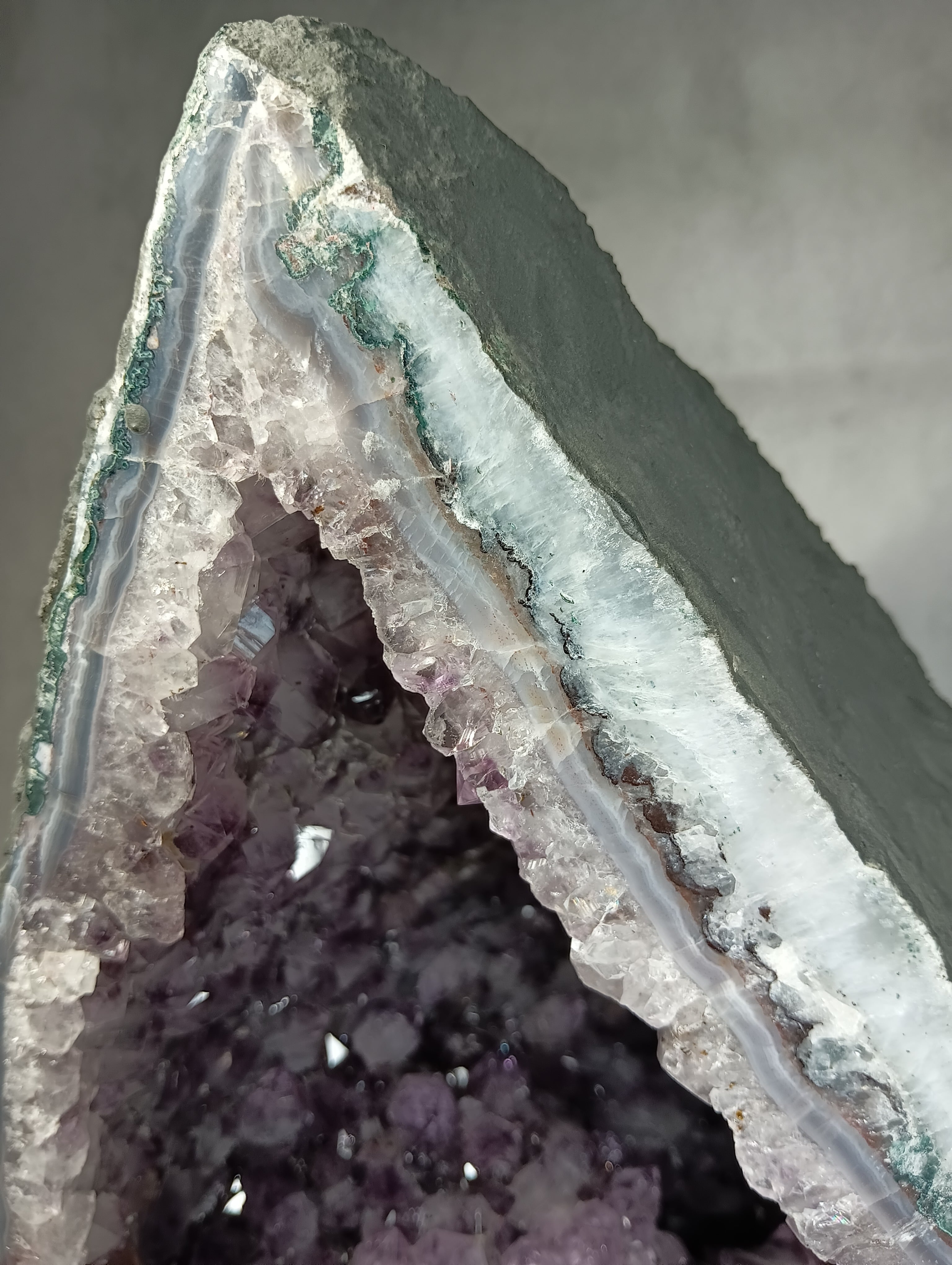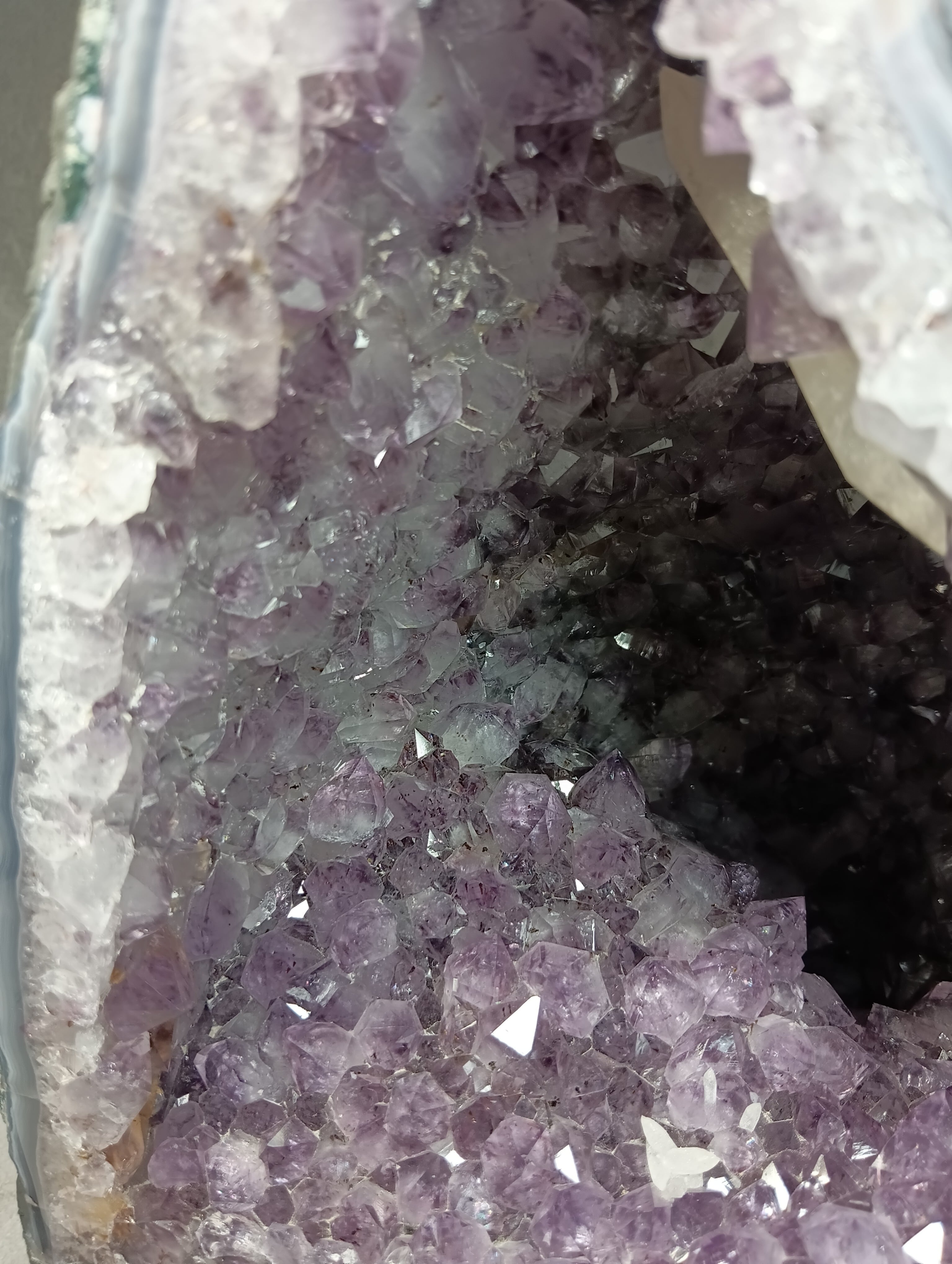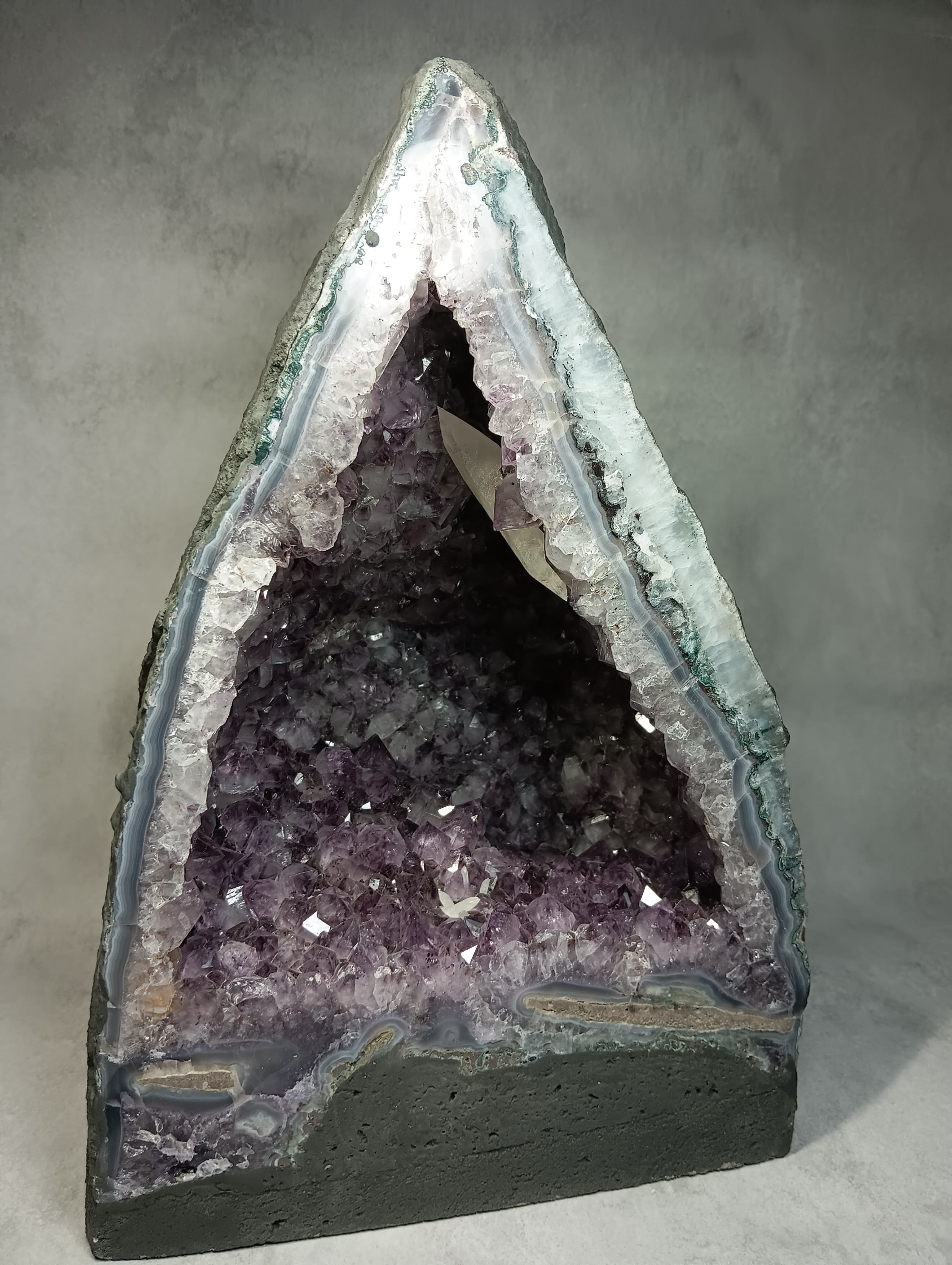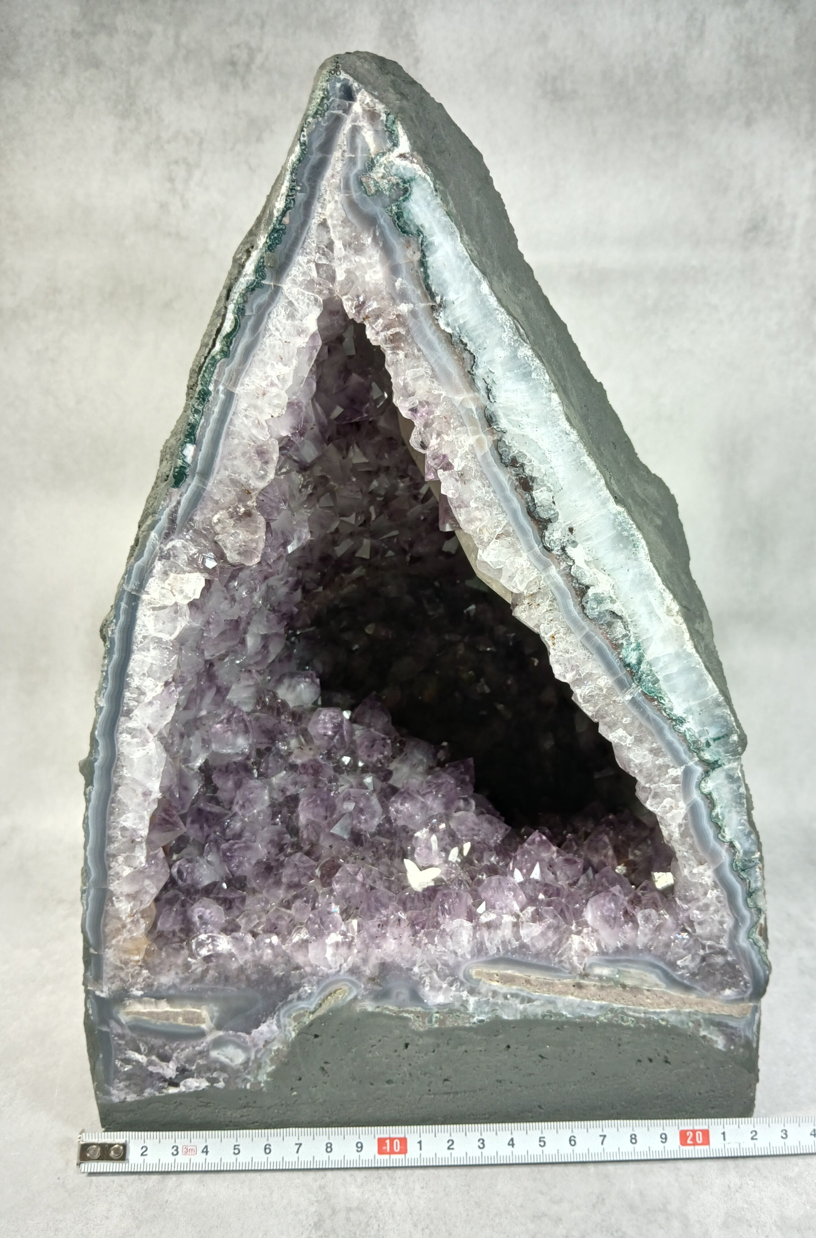アメジストドーム 〜双晶の導き・蝶の兆し〜 ☆なんと虹が見えます☆ 非加熱ブラジル産(薄層型) 《ハイクオリティ・オード》 約12kg【濃紫のきらめき、空間を整える光の聖域】