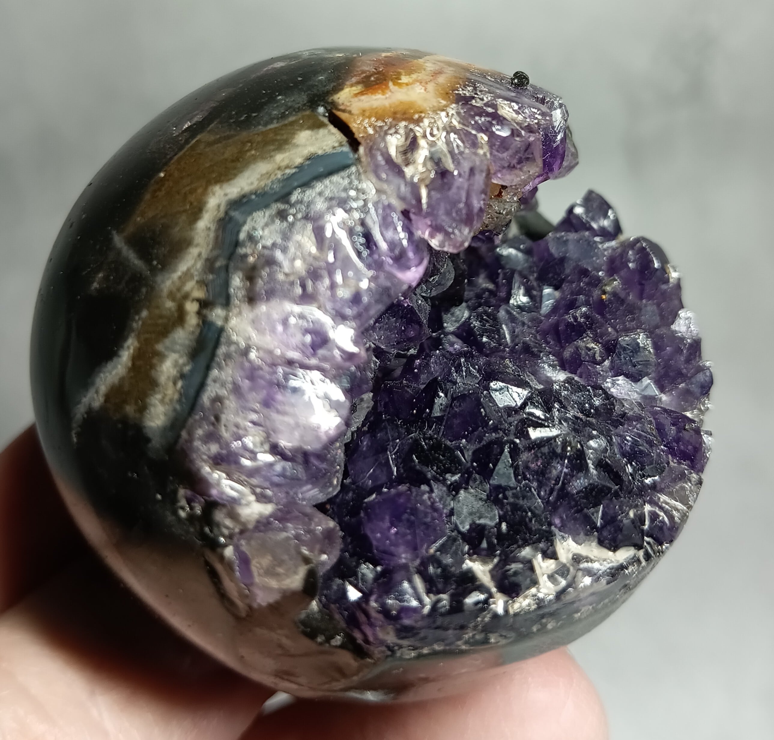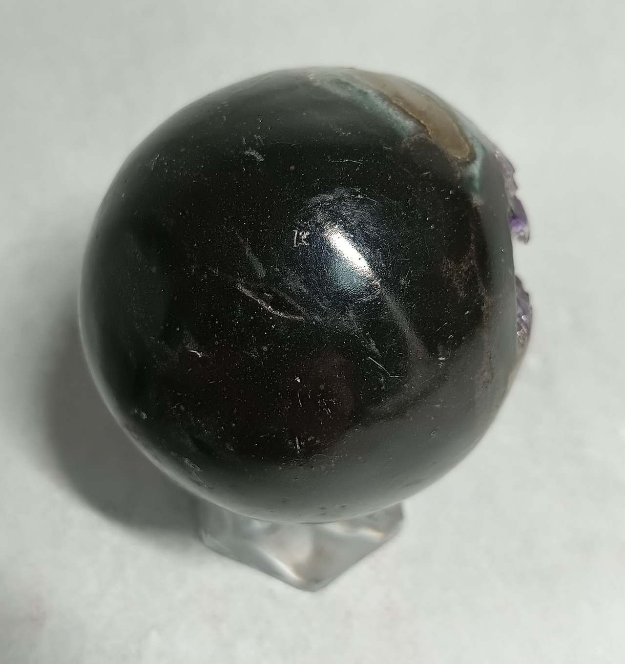 アメジスト ドゥルージー丸玉 ハイクオリティー ウルグアイ産(台付き)約53mm 「笑顔と幸運を招く、癒しの宇宙球」