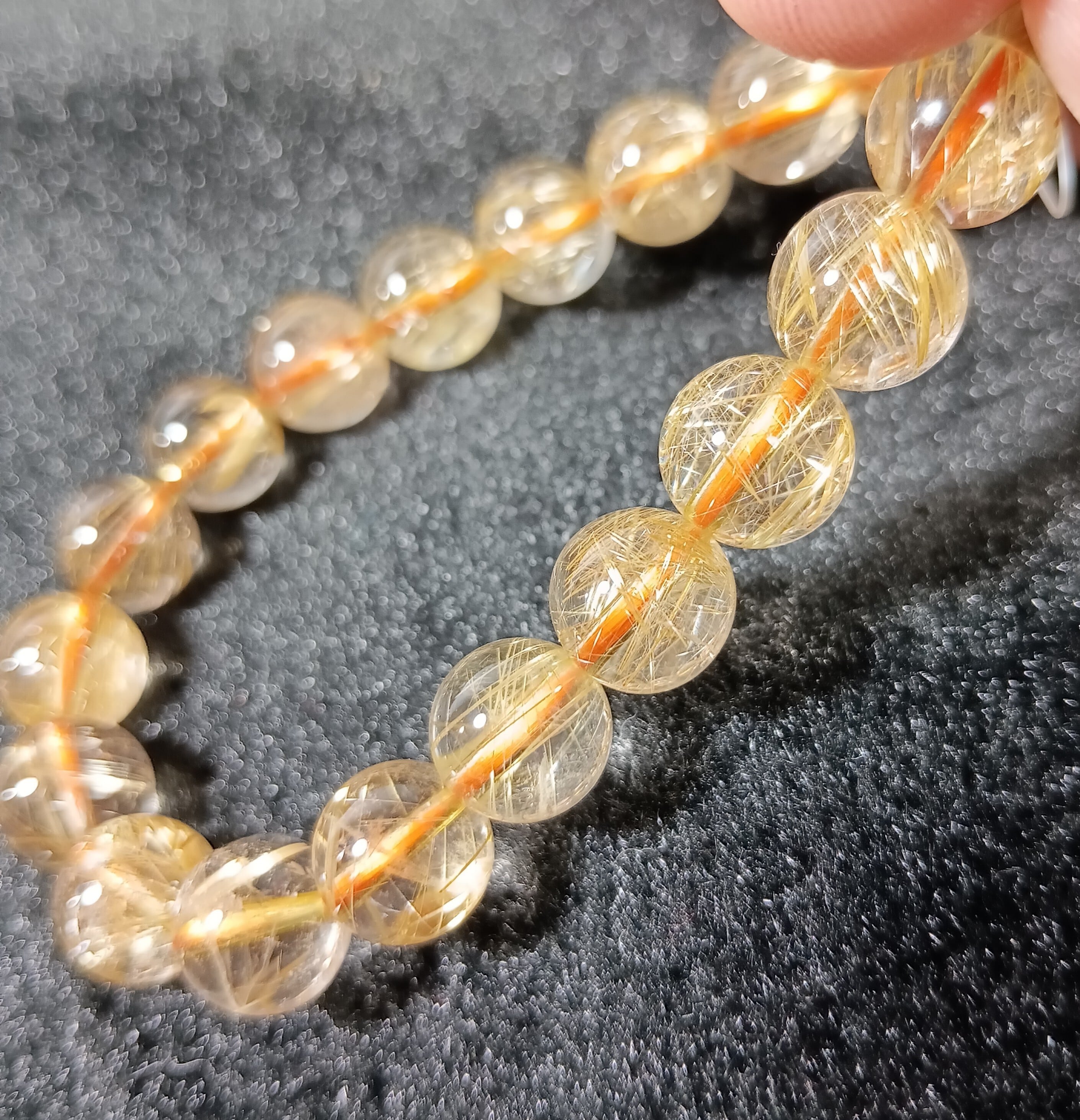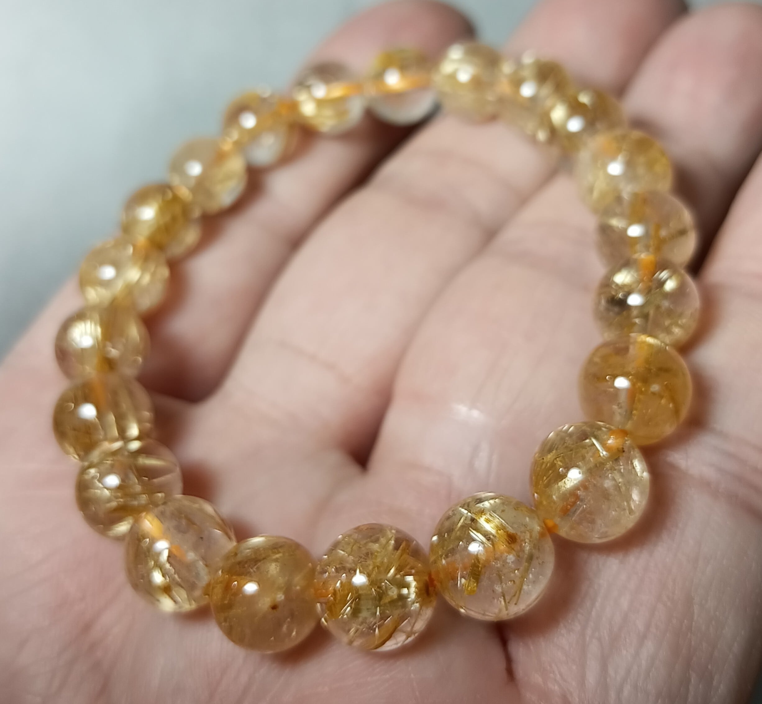 17cm ゴールドルチルクォーツ6A 9-9.5mm ブラジル産 【黄金の糸が導く、幸運の未来】