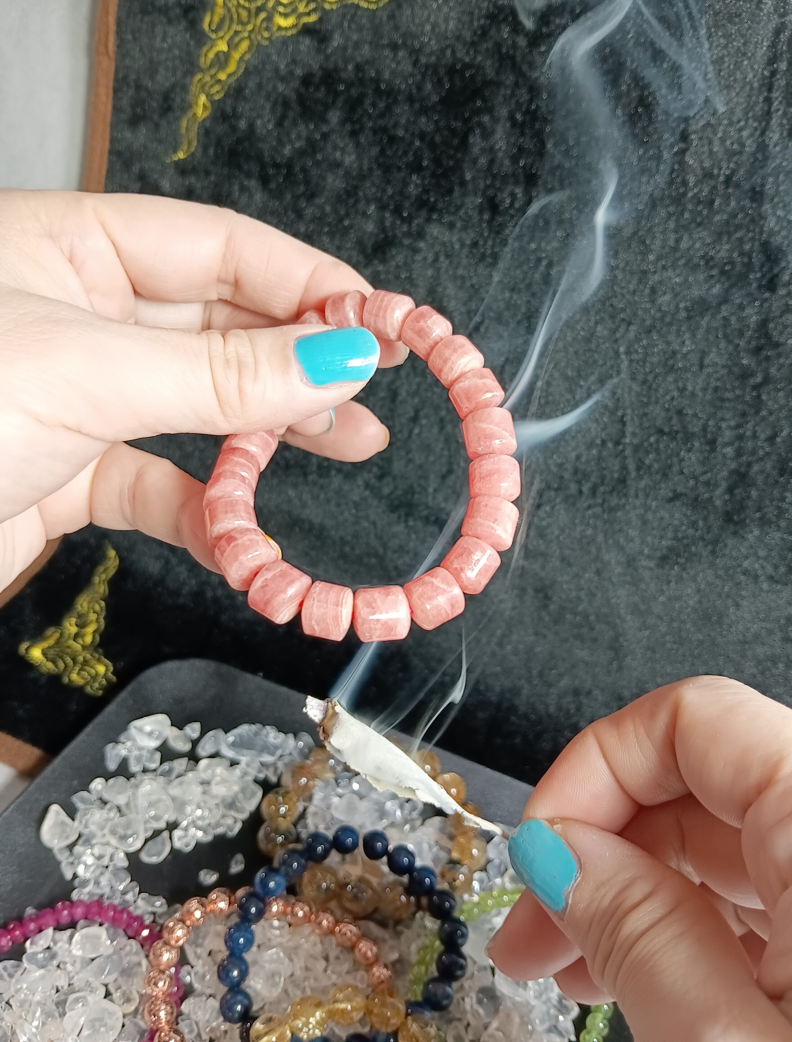 ●写真にある黒い受け皿・水晶さざれ・ブレスレット
