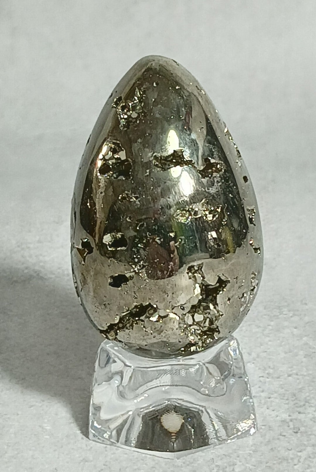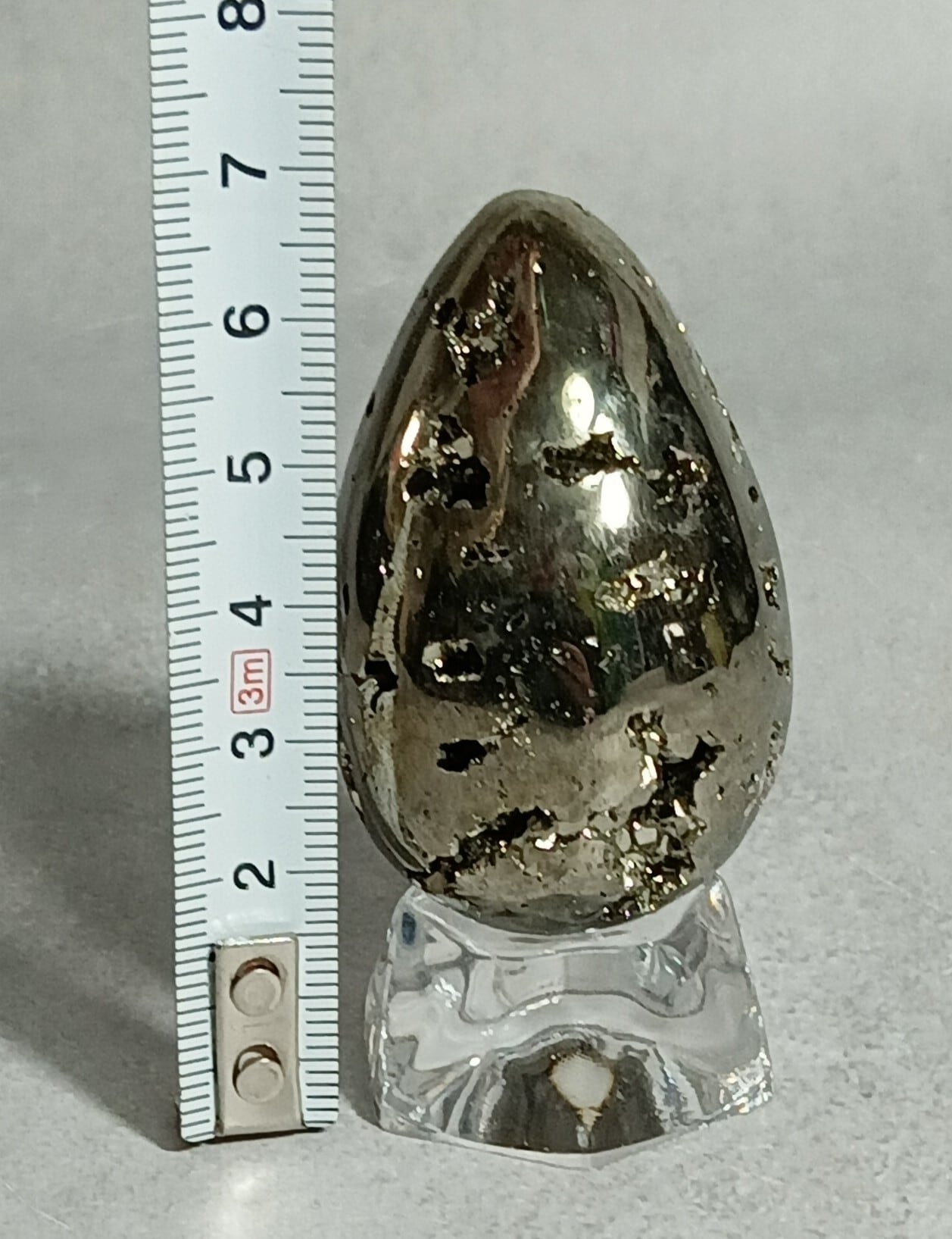 たまご型 パイライト (台付き)(4Aクラス) 130g ペルー産【 未来を宿す、黄金のたまご】