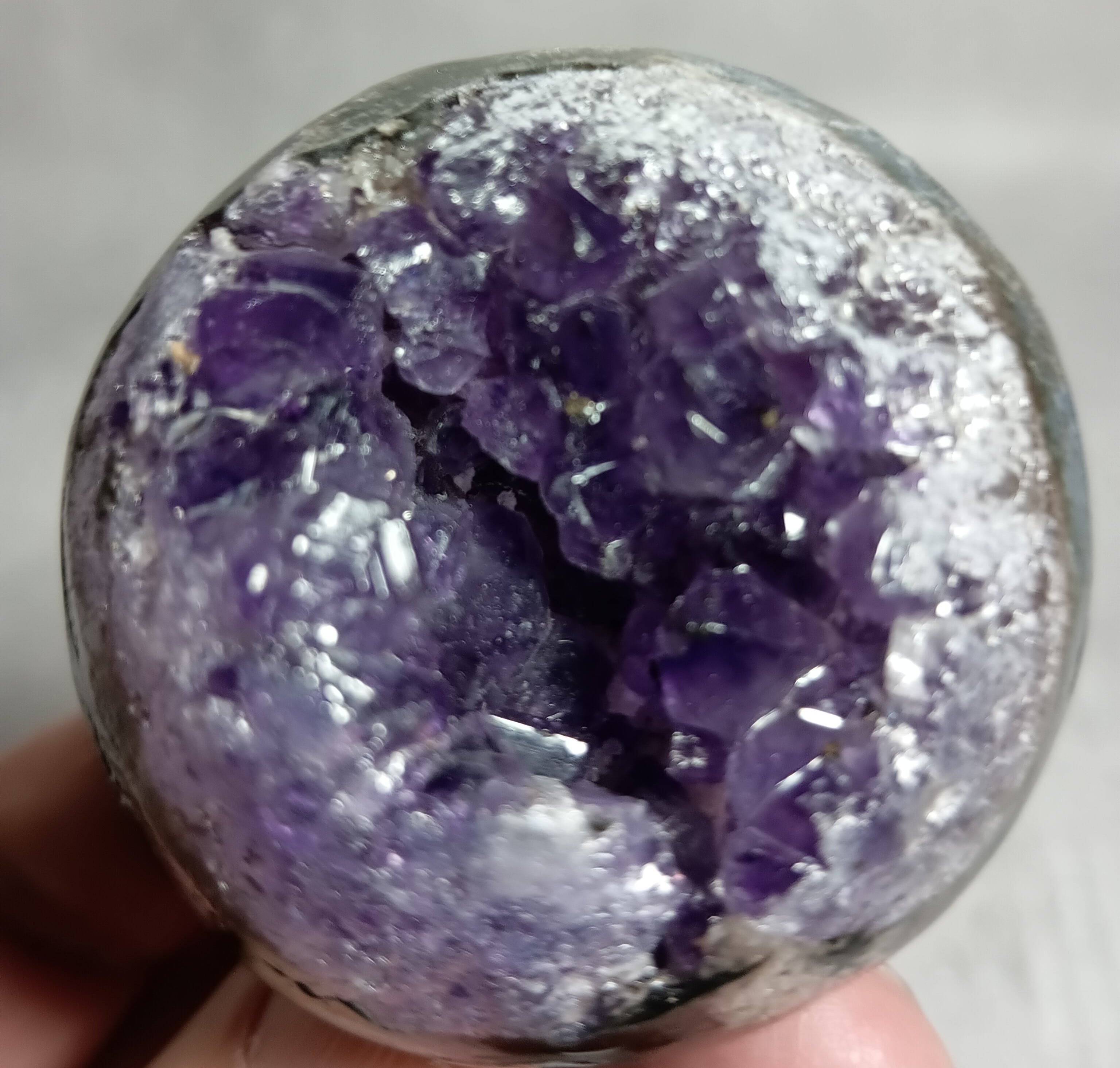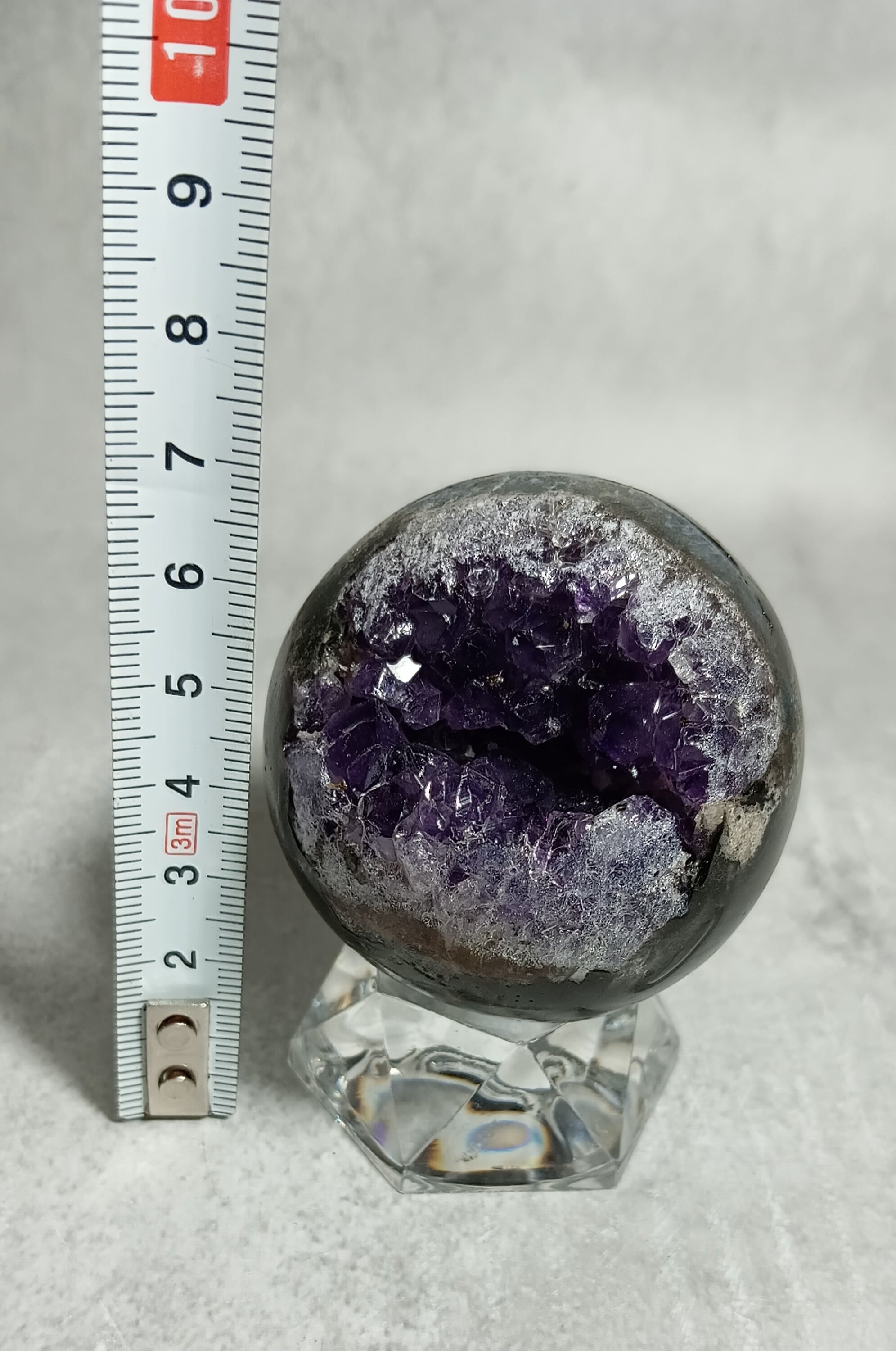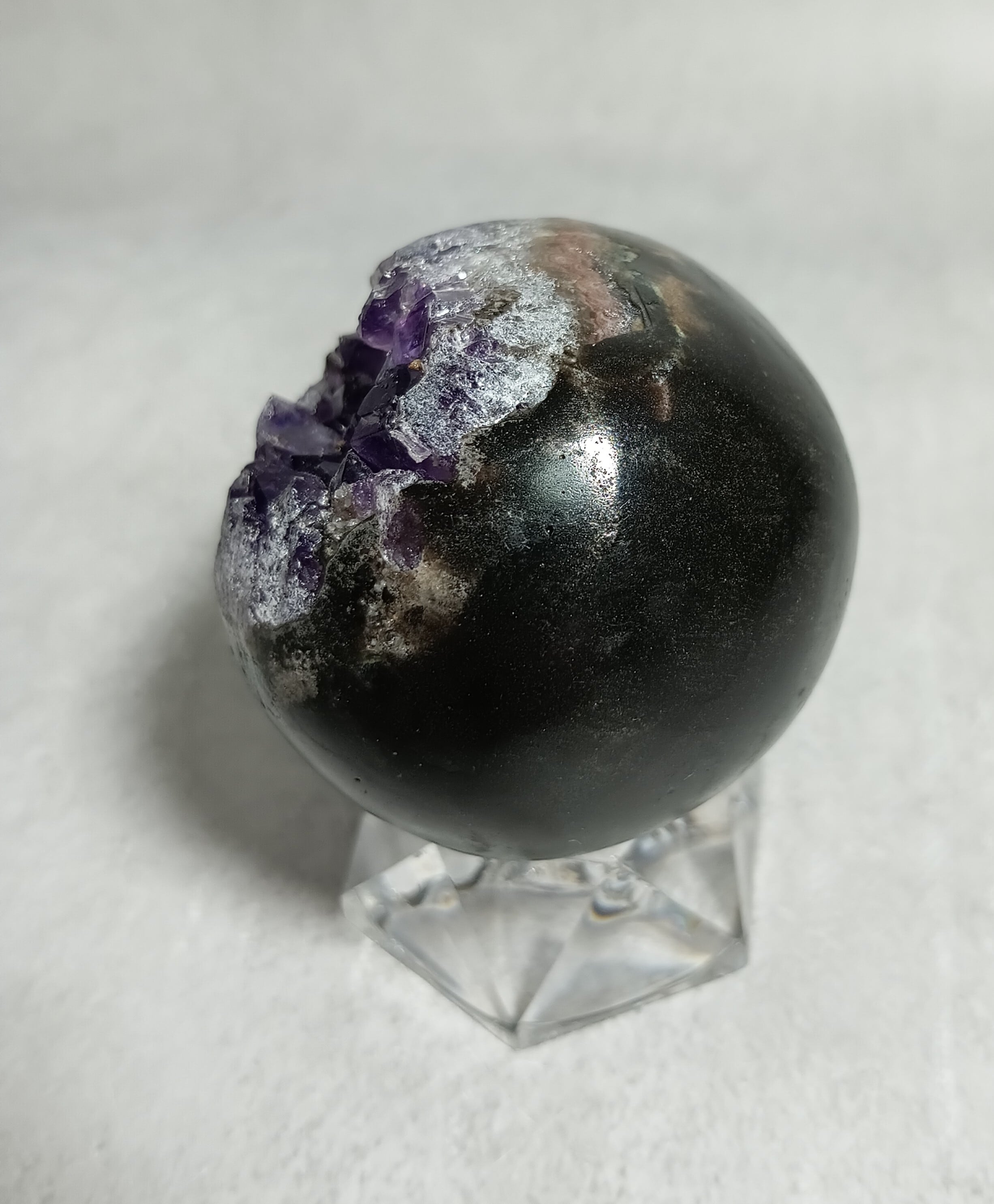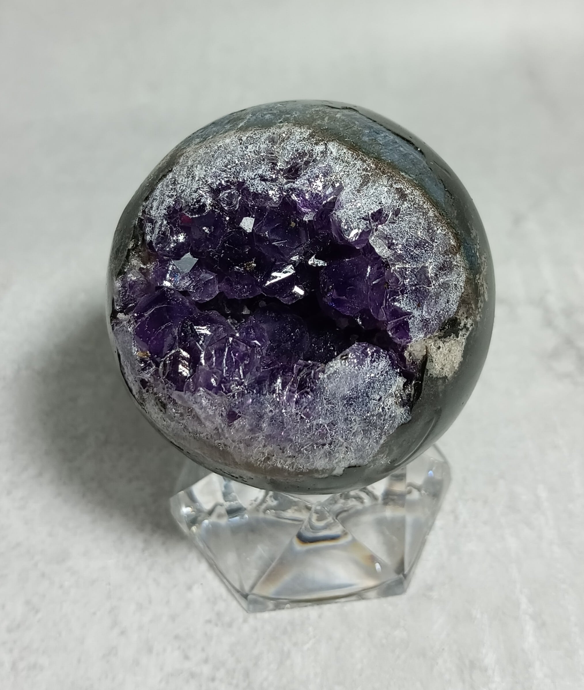 52㎜ アメジスト ドゥルージー丸玉 笑口 ハイクオリティー ウルグアイ産(台付き) 「笑顔と幸運を招く、癒しの宇宙球」