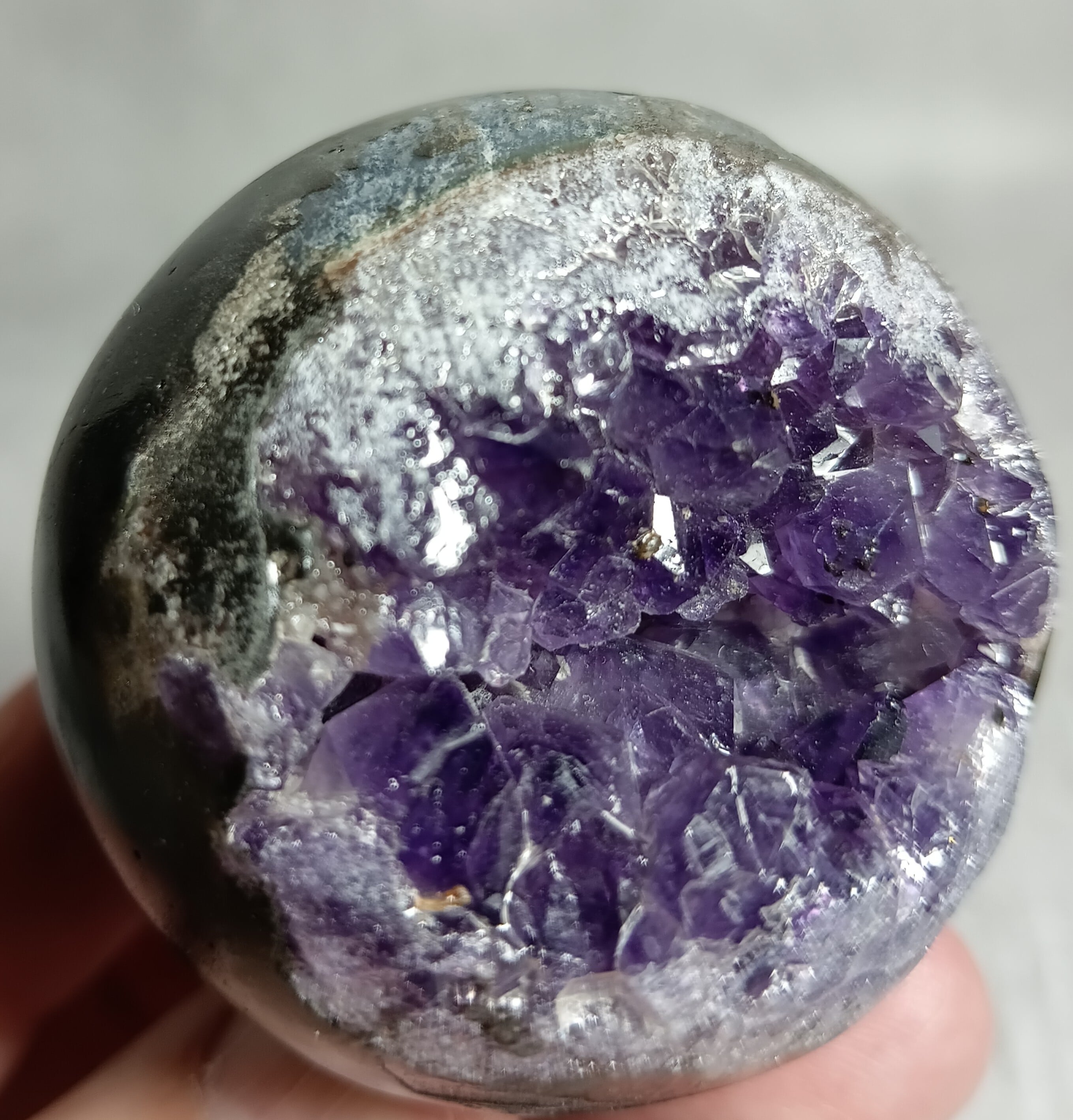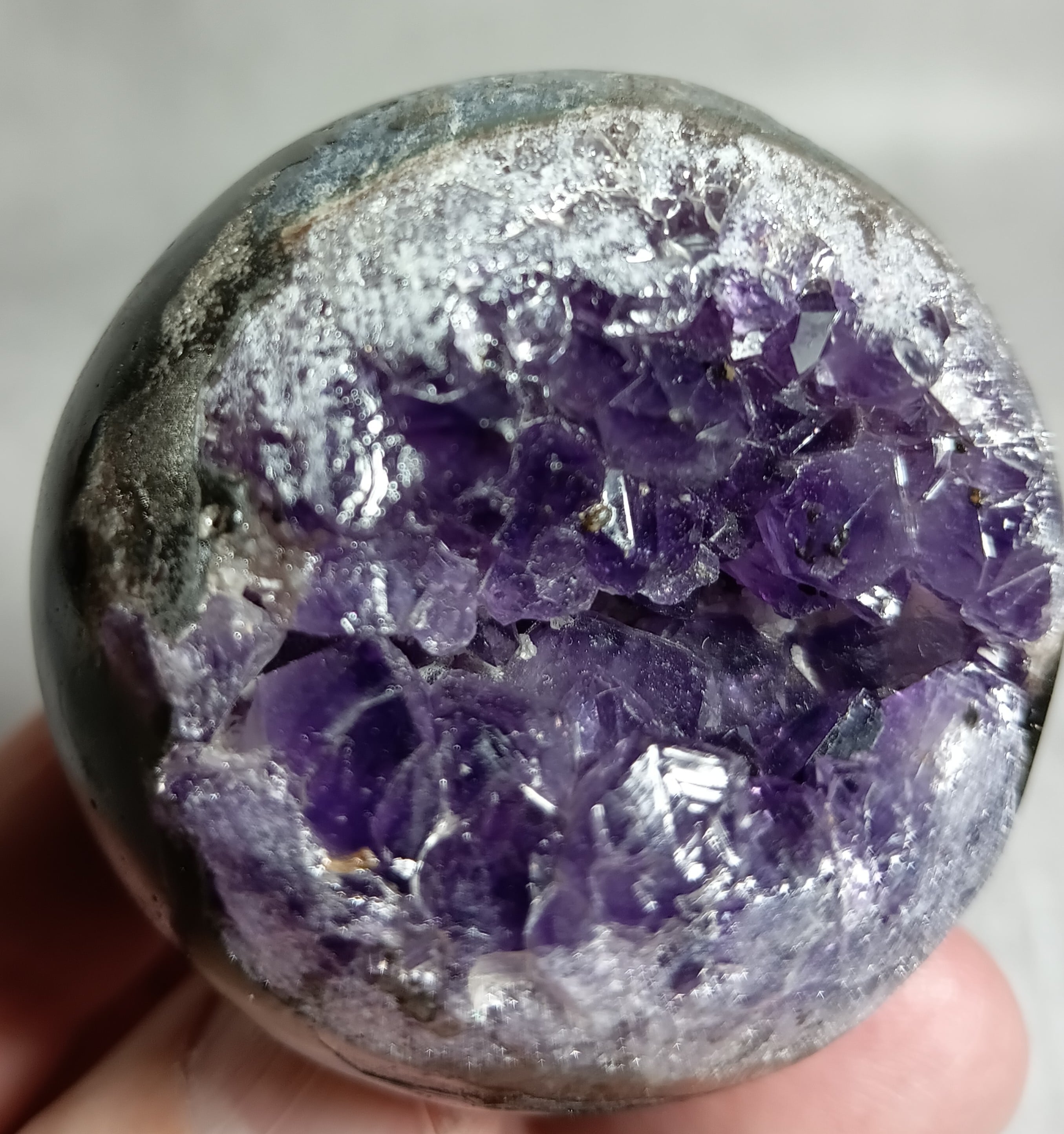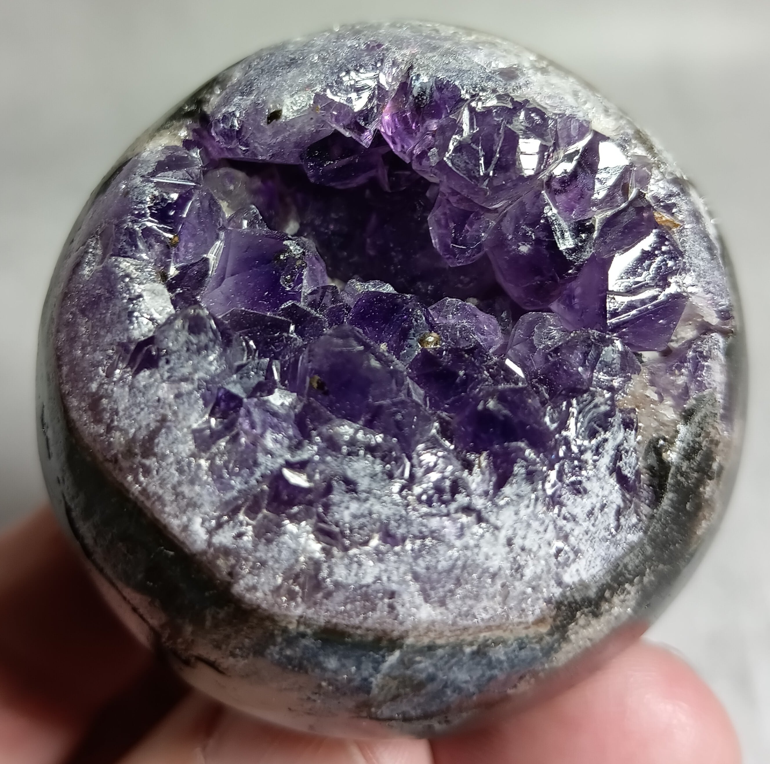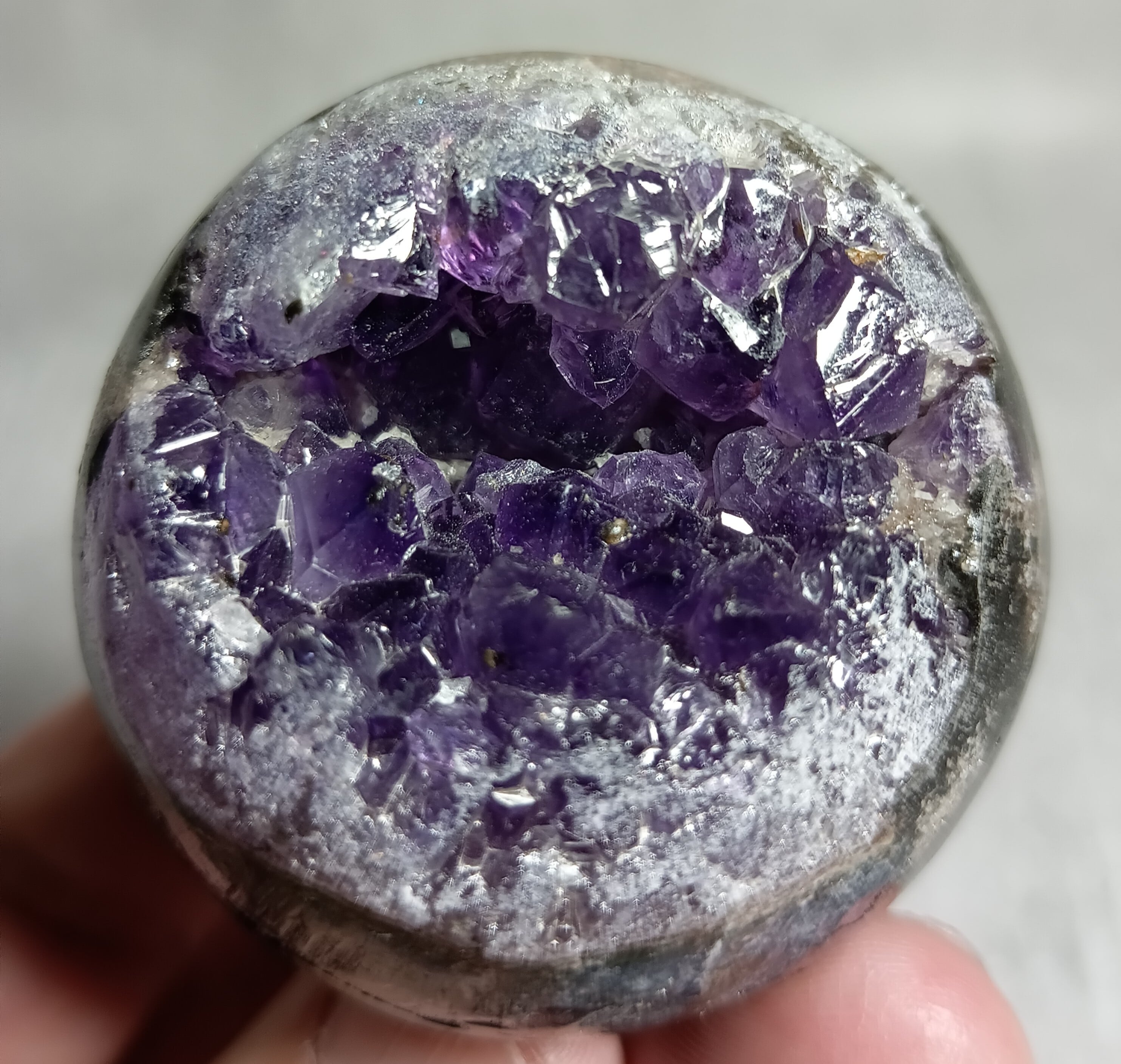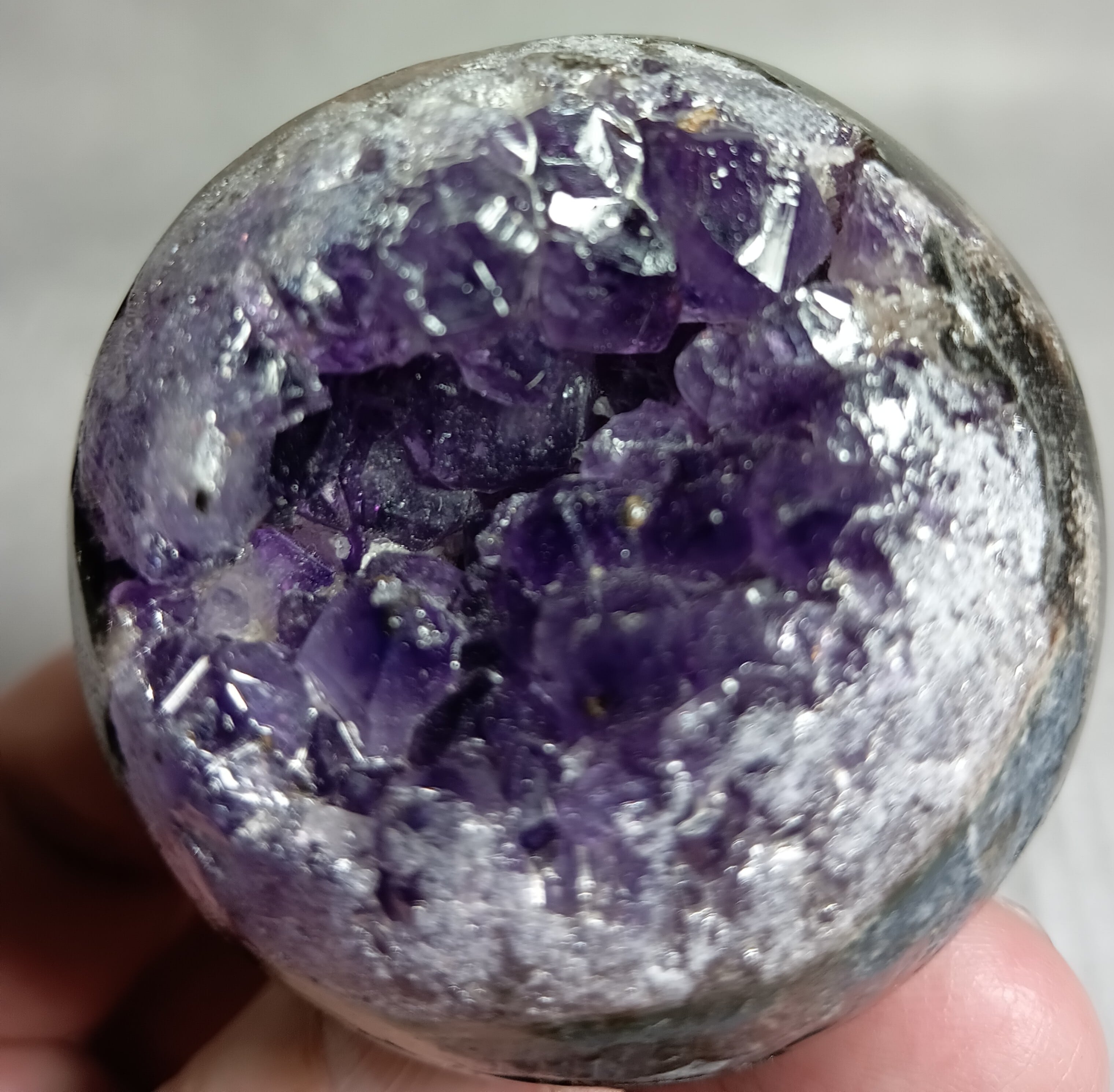 52㎜ アメジスト ドゥルージー丸玉 笑口 ハイクオリティー ウルグアイ産(台付き) 「笑顔と幸運を招く、癒しの宇宙球」