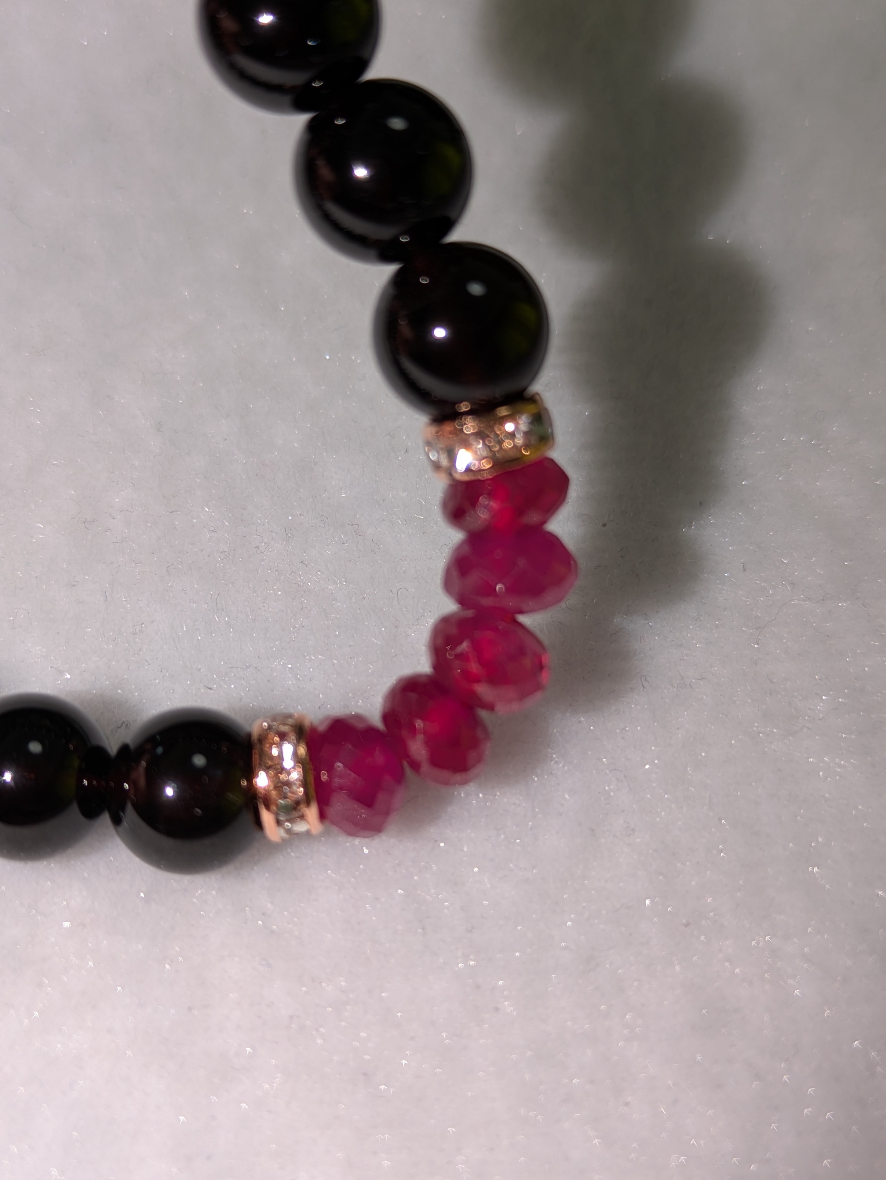 17cm ピジョンブラッドルビー5粒 モリオン最高級 8mm 【 宝石級ルビーと最強ブラック。“本物のお守り”】激レア お買い得