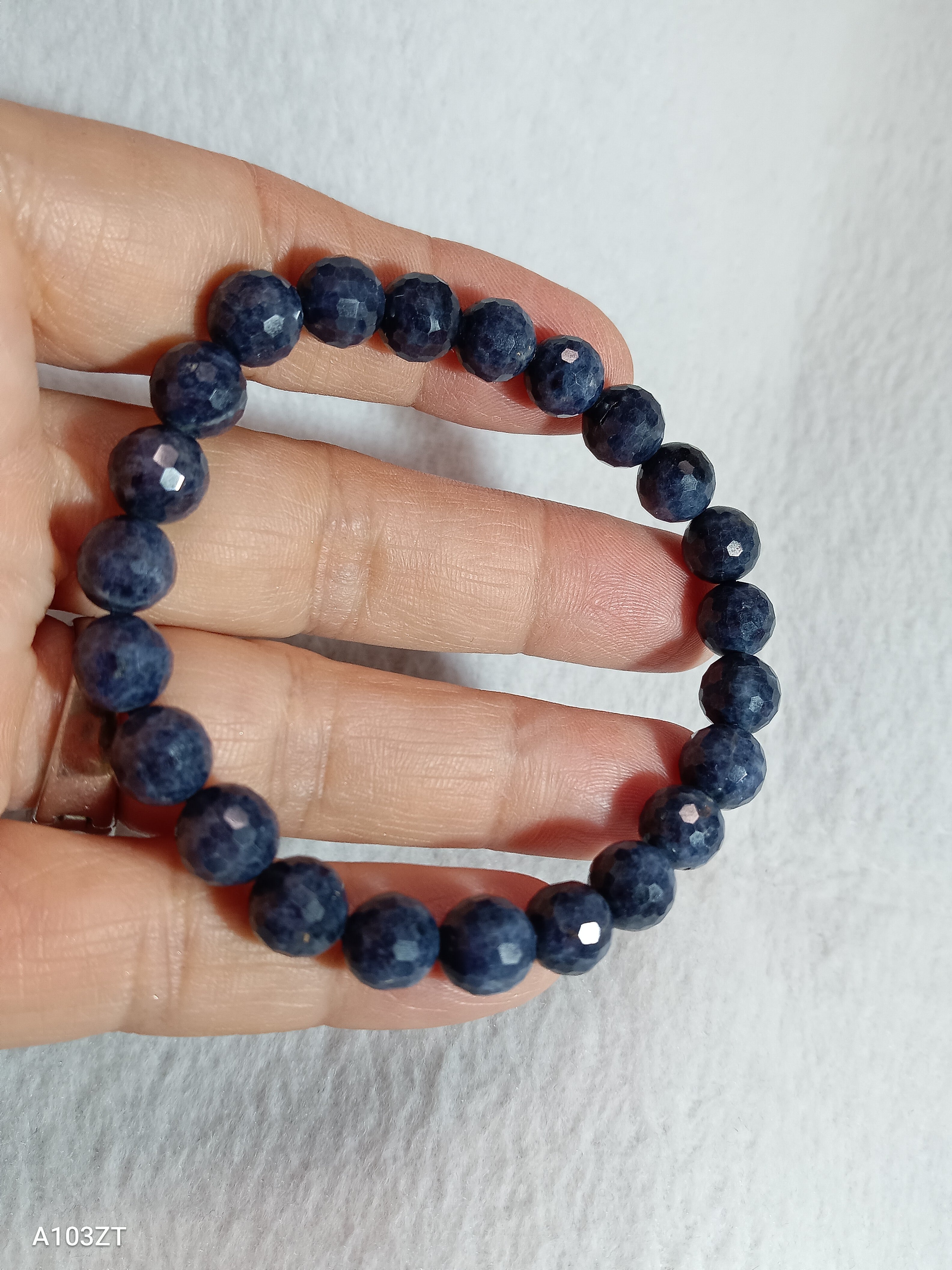 15cm ブルーサファイア 5A 8mm 128面カット 高品質 ブレスレット インド産